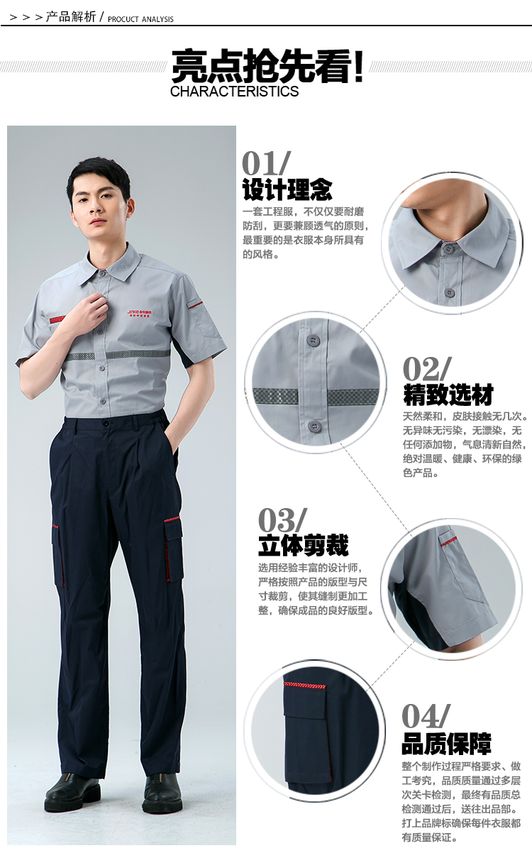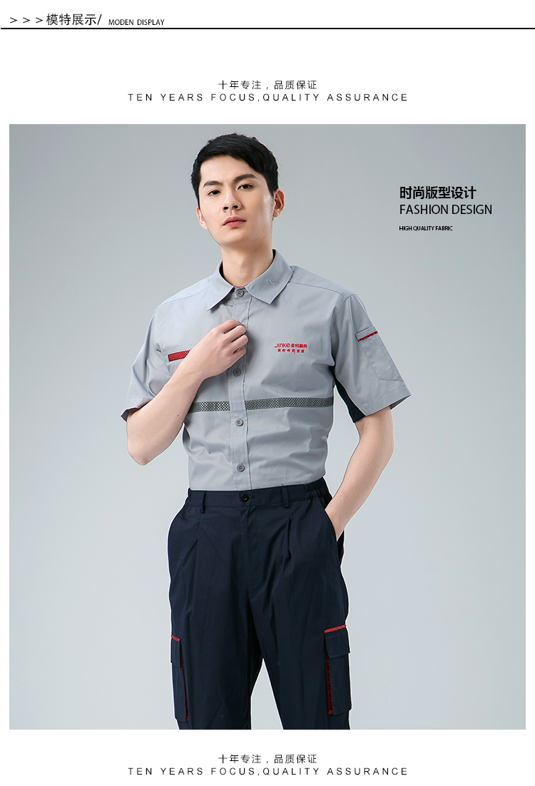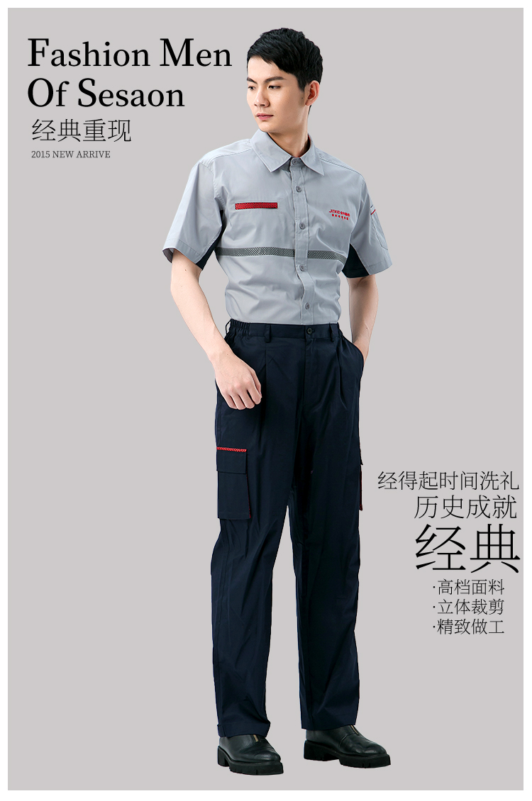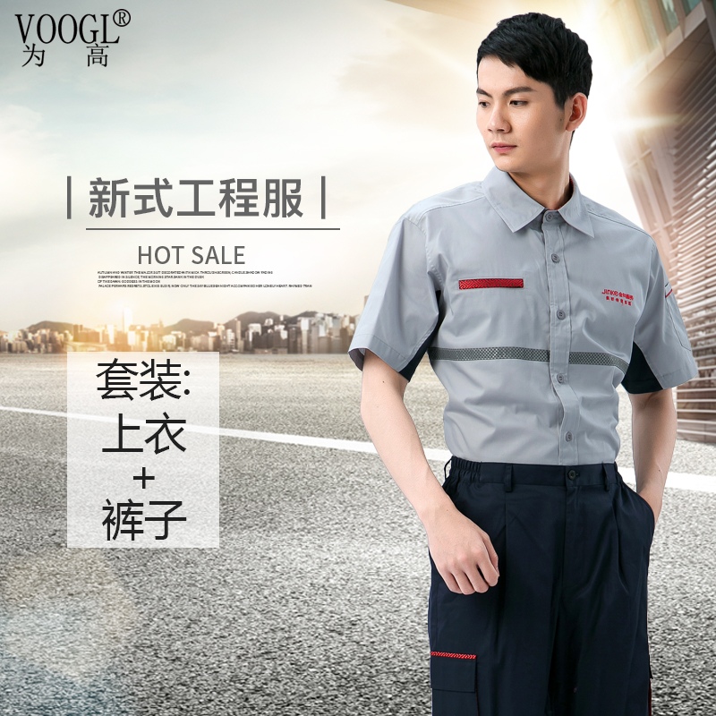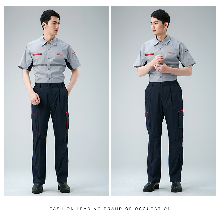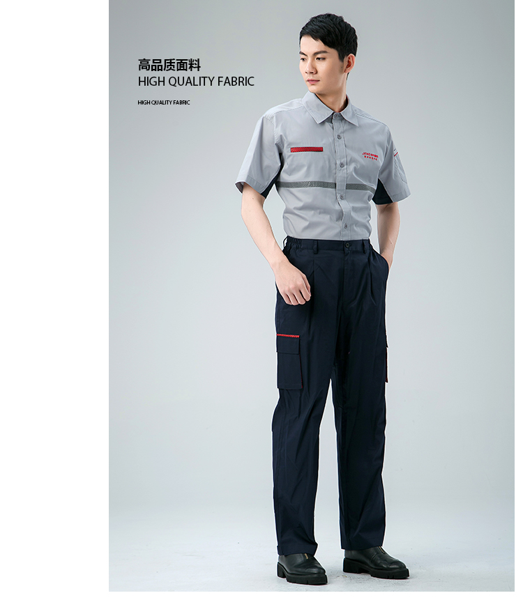 工程服灰红色短袖
